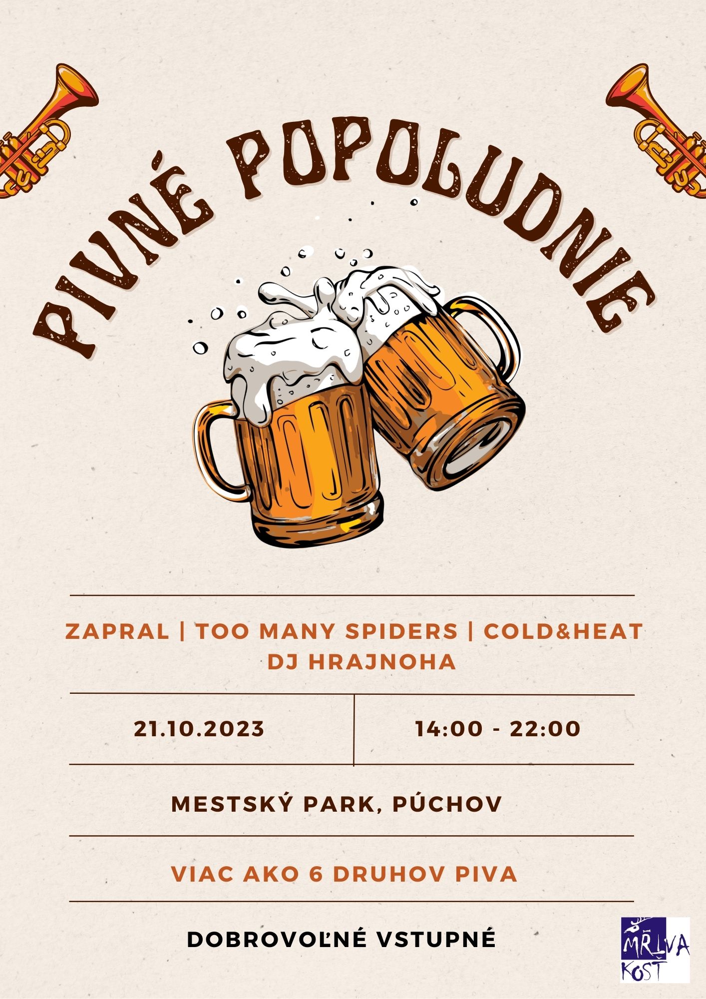 K októbru už neodmysliteľne patrí pivo a k pivu rovnako tak dobrá hudba. Príďte si vychutnať viac ako 6 rôznych druhov čapovaného piva od známych i menej menej známych slovenských či českých pivovarov v spojení s koncertmi lokálnych kapiel a podporte tak ďalšie fungovanie MŔTVEJ KOSTI a festivalu KONČINY.